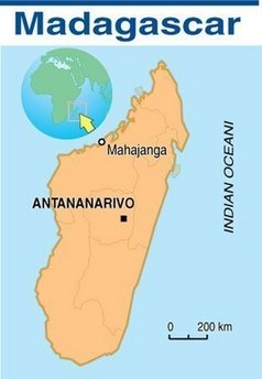 A map locating Madagascar.