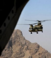 A US Army Chinook helicopter with the NATO-led International Security Assistance Force (ISAF) is seen in 2009 close to the Pakistan border. NATO helicopters Thursday shelled a Pakistani paramilitary checkpoint and killed three soldiers in a cross border attack, security officials said.
