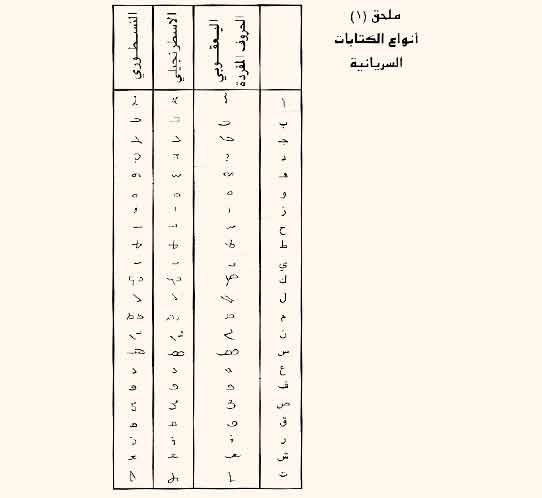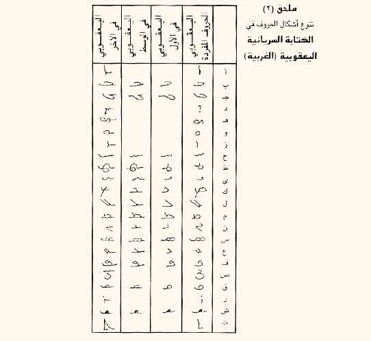 ملحق (2) تنوع أشكال الحروف في الكتابة السريانية اليعقوبية (الغربية)