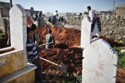 A boy watches men dig graves for future casualties of Syria's civil conflict at Sheikh Saeed cemetery in Azaz city, north of Aleppo December 30, 2012.